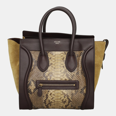 Celine Dark Brown Snakeskin Pyhton Mini Luggage Bag 1147383 (коричневый, lpn29806645)
