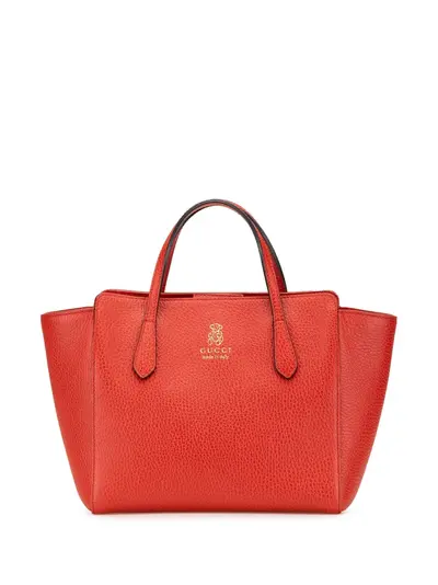 leather body flat leather handles open top with magnetic snap closure interior slip pocket red Serial Number: 355640 204046 This item has no inclusions. Condition: GOOD. This previously owned and used item is in good condition with minimal signs of use. This may include fading of material or plating and scratches. Please refer to the photos on this product page for a detailed view of the item, including any damages declared.