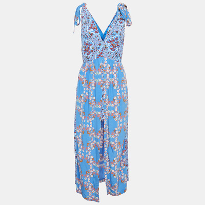 Sandro Navy Blue Floral Print Crepe Layered Midi Dress M 1145976 (голубой, lpn29821168)