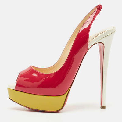Christian Louboutin Multicolor Patent Leather Lady Peep Toe Platform Slingback Pumps Size 37 1148552 (lpn29840713)
