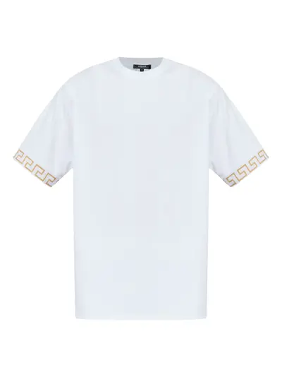 white short sleeves gold-tone Greca detailing relaxed fit crew neckline soft drape