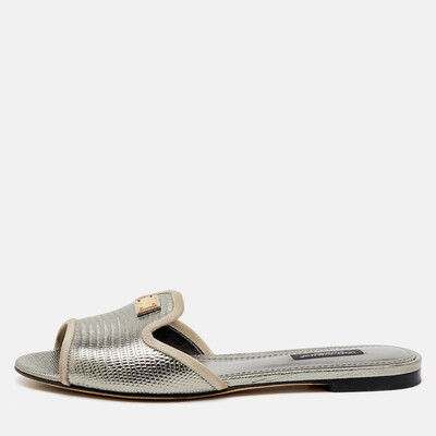 Dolce&Gabbana Silver Iguana Laminated Leather Flat Slide Sandals Size 36.5 1147093 (lpn29848183)