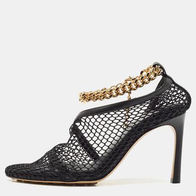 Bottega Veneta Black Leather and Mesh Stretch Ankle Strap Pumps Size 35.5 1148375 (чёрный, lpn29848979)