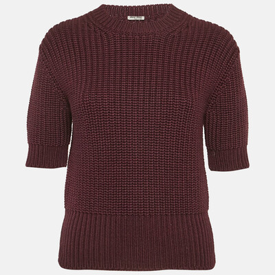 Miu Miu Burgundy Rib Knit Crewneck Sweater S 1149168 (lpn29849809)