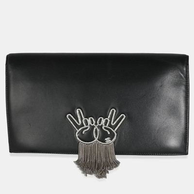 Chanel Black Lambskin Crystal Peace Sign Emoji Fold Over Clutch 1150199 (чёрный, lpn29859841)