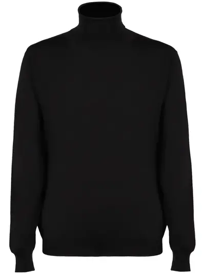 black wool fine knit high neck long sleeves ribbed cuffs and hem