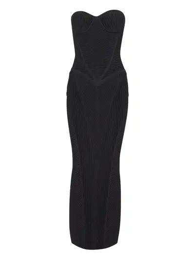 black rear zip fastening bustier-style neckline strapless
