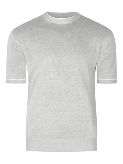 light grey crew neck ribbed cuffs and hem contrasting trim short sleeves