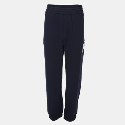 Fendi’s FF embossed trousers in navy cotton knit are where loungewear meets luxury. Subtly detailed with the house’s iconic motif, they strike a balance between ease and sophistication. Style with matching knitwear for a coordinated look that speaks volumes.
