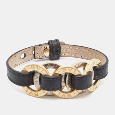 Add structure and statement to your wristwear with this Bvlgari bracelet, designed in two tone metal and black leather. Interlocking circles nod to the brand’s legacy of timeless geometry and craftsmanship. Whether worn with crisp tailoring or casual weekend edits, it’s a refined piece that layers effortlessly.