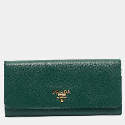 Prada Green Leather Logo Flap Continental Wallet 1152544 - 1