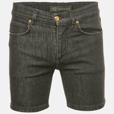 Experience the blend of sophistication and style with these Versace black denim shorts, the perfect addition to any casual ensemble. Crafted from premium denim, ensuring optimal comfort and ease of movement. With four practical pockets and a discreet zip closure, these shorts stand as a testament to expert craftsmanship. Ideal for the fashion forward man, they offer a touch of luxury to your everyday look. Elevate your casual wardrobe with timeless elegance.
