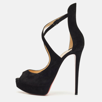 Christian Louboutin Black Suede Marlenalta Platform Sandals Size 41 1153349 (чёрный, lpn29894007)
