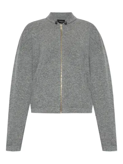 charcoal grey front zip fastening shawl collar long sleeves signature Monili chain detail