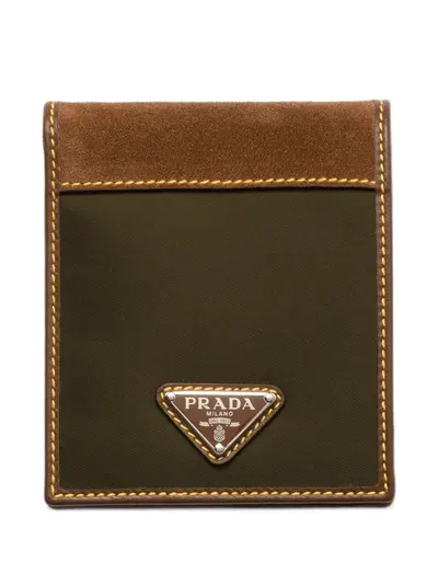 olive green leather trim bi-fold design internal card slots enamel triangle logo