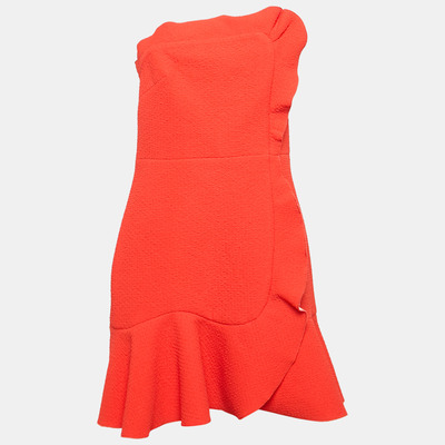 Sandro Orange Textured Jersey Ruffled Mini Dress L 1155906 - 1 small