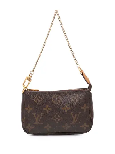 monogram canvas body chain link handle top zip closure brown Serial Number: SF2124 This item has no inclusions. Condition: GOOD. This previously owned and used item is in good condition with minimal signs of use. This may include fading of material or plating and scratches. Please refer to the photos on this product page for a detailed view of the item, including any damages declared.