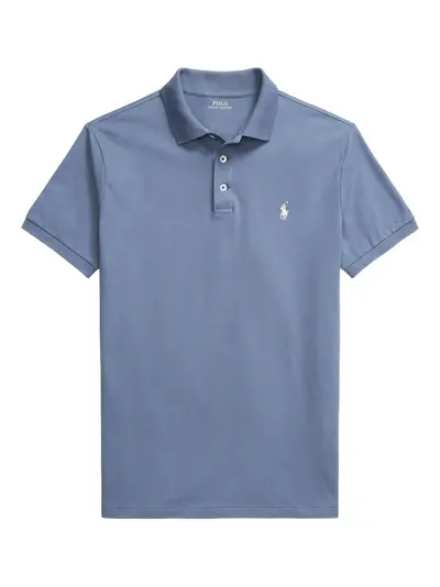powder blue short front button fastening signature Polo Pony motif polo collar short sleeves