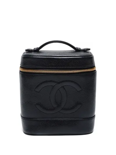 circa 2000-2001 black calf leather signature interlocking CC logo single flat top handle two-way zip fastening main compartment internal elasticated slip pocket internal logo stamp gold-tone hardware Serial Number: 6458775 Condition: GOOD. This previously owned and used item is in good condition with minimal signs of use. This may include fading of material or plating and scratches.