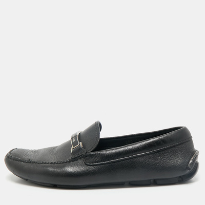 Prada’s sleek black leather loafers are a masterclass in effortless sophistication. Their streamlined, slip on design ensures all day comfort with a polished touch.