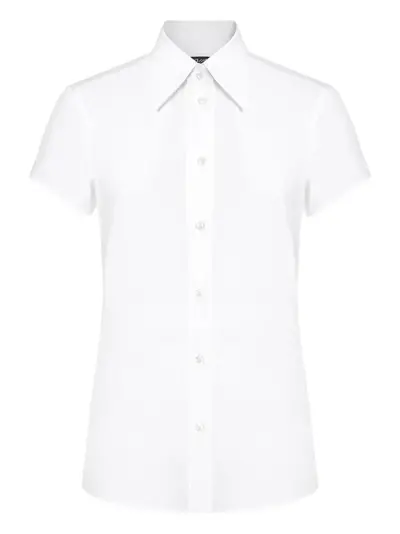 white front button fastening short sleeves straight hem cropped