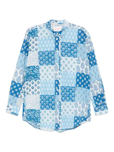 light blue front button fastening buttoned cuffs all-over floral print long sleeves