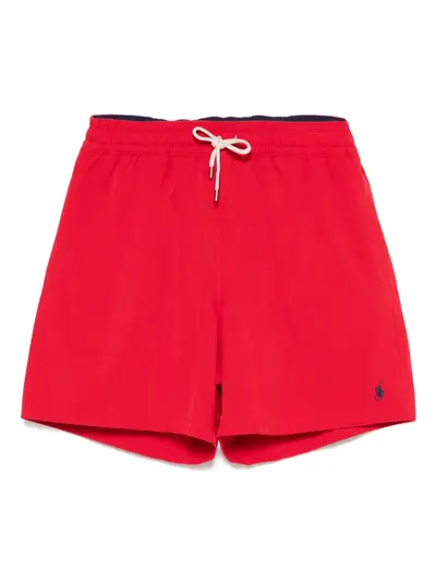 brick red elasticated drawstring waistband rear flap pocket signature Polo Pony motif Be mindful to try on swimwear over your own garments.