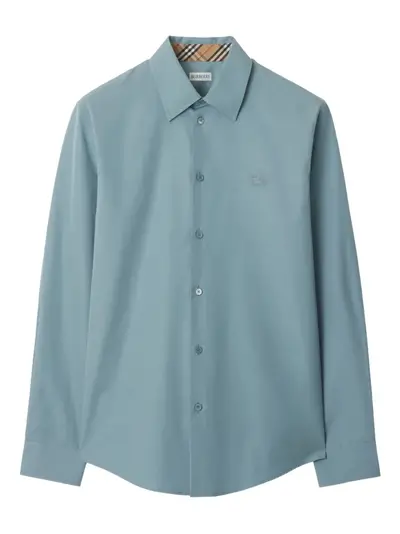 cornflower blue front button fastening buttoned cuffs signature Equestrian Knight motif Vintage Check-pattern lining