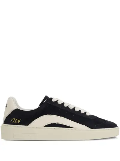 navy blue contrasting off-white detailing front lace-up fastening padded tongue gold-tone logo embroidery rubber sole