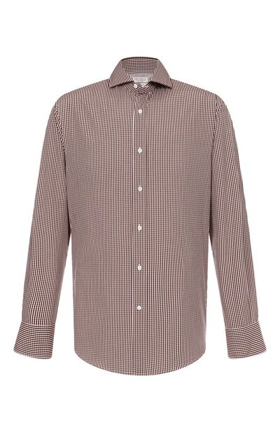 Рубашку с фигурным низом и прямоугольными манжетами сшили из хлопкового поплина в клетку виши. Приталенная модель органично впишется в повседневный гардероб.
