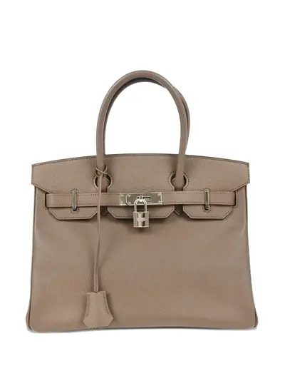 circa 2014 taupe grey Epsom leather two rolled top handles foldover top signature sangle straps twist-lock fastening padlock fastening main compartment internal zip-fastening pocket internal slip pocket internal logo stamp metal feet set of keys hanging key fob silver-tone hardware Condition: EXCELLENT. This previously owned item is in near-perfect condition with no signs of damage or use.