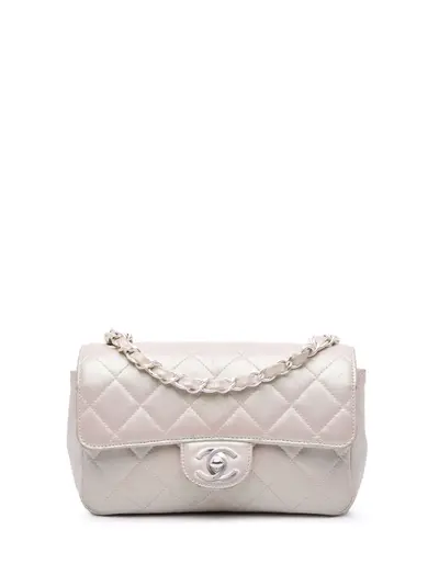 quilted lambskin body leather woven chain shoulder strap front flap with a twist lock closure exterior back slip pocket interior zip and slip pockets white Serial Number: 6686440 Inclusions: box, dust bag, authenticity card. Condition: GOOD. This previously owned and used item is in good condition with minimal signs of use. This may include fading of material or plating and scratches. Declared Damages: Practical Attachment Feature(s) Moderate Rust/Tarnish. Please refer to the photos on this product page for a detailed view of the item, including any damages declared.