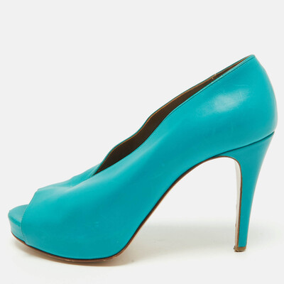 Hermes Blue Leather V-Neck Peep Toe Platform Pumps Size 38.5 1159960 (голубой, lpn29946303)