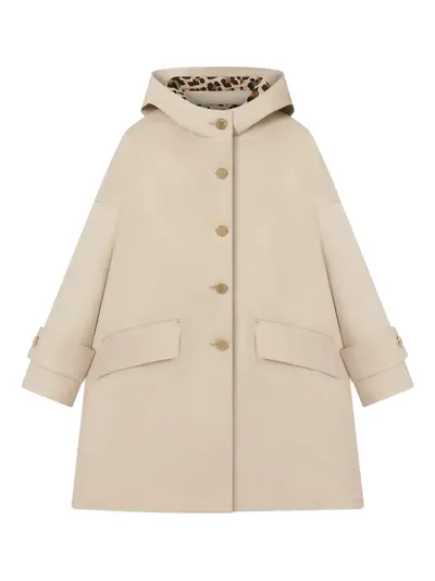 beige leopard print lining front button fastening large flap pockets adjustable cuff details
