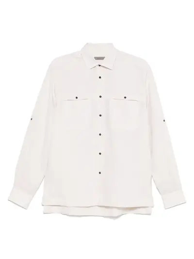 beige front button fastening two chest flap pockets long sleeves buttoned cuffs