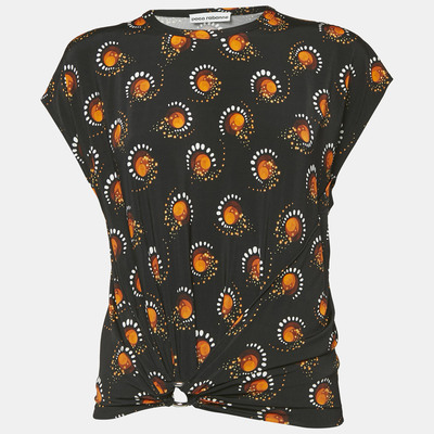 Paco Rabanne Black Printed Jersey Gathered Top M 1160077 (чёрный, lpn29953095)
