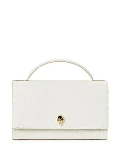 ivory white leather skull appliqué embossed crocodile effect chain-link shoulder strap foldover top with magnetic fastening main compartment gold-tone hardware