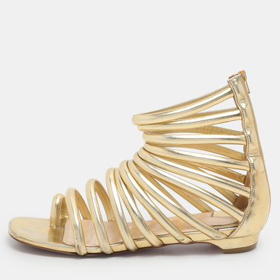Christian Louboutin Gold Leather Catchetta Gladiator Sandals Size 36.5 1160975 (lpn29960682)