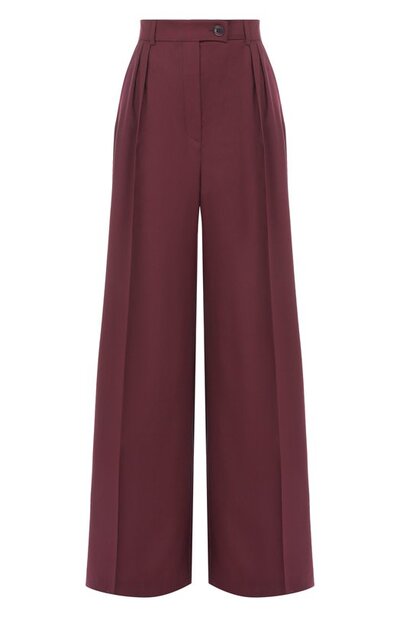 Для пошива широких брюк Iconic с отглаженными стрелками использовали тонкую костюмную ткань на основе шерсти. Модель с парными складками спереди дополнили боковыми карманами.