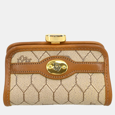 Christian Dior Beige/Brown Honeycomb Pattern Coin Case Wallet 1161913 - 1