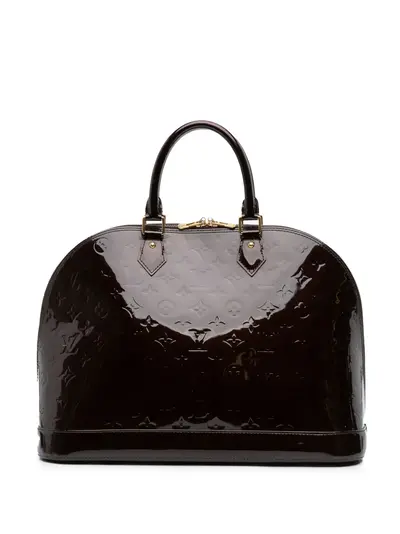 monogram vernis leather body rolled handles clochette top zip closure interior slip pockets purple Serial Number: SN0163 Inclusions: padlock, key, charm. Condition: GOOD. This previously owned and used item is in good condition with minimal signs of use. This may include fading of material or plating and scratches. Declared Damages: Front Feature(s) Minor Splitting. Please refer to the photos on this product page for a detailed view of the item, including any damages declared.