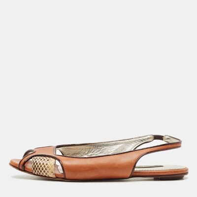 Earthy elegance meets exotic allure in these Dolce and Gabbana flat sandals. Crafted from rich brown leather and accented with genuine snakeskin panels, they showcase a refined yet adventurous spirit. The minimalist silhouette is elevated by premium materials and impeccable Italian craftsmanship, making them a chic choice for resort wear or warm weather city strolls.