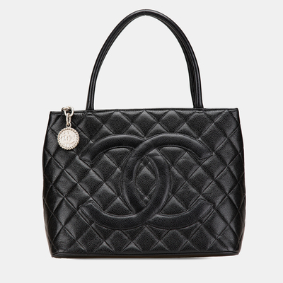 Chanel blends iconic structure with everyday elegance in the Black Caviar Medallion Tote. Crafted from durable grained leather with signature quilting and a gold tone medallion zipper pull, this timeless piece is perfect for polished daily carry.