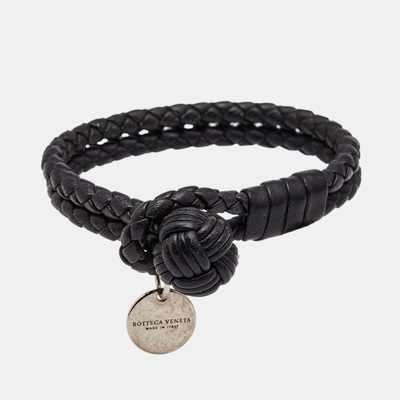 Bottega Veneta’s Knot bracelet in black Intrecciato leather wraps elegantly around the wrist with a silver tone metal closure. Subtle and sculptural, it reflects the brand’s artisanal ethos. An understated piece that complements any look with quiet confidence.