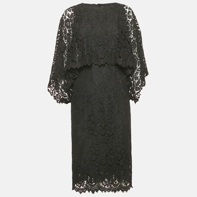Dolce&Gabbana Black Lace Faux Cape Detail Midi Dress S 1161697 (чёрный, lpn29975361)