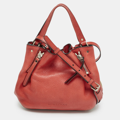 Indulge in timeless elegance with this Burberry handbag. Crafted from red leather and adorned with the iconic House Check canvas, it seamlessly blends classic British style with modern sophistication.