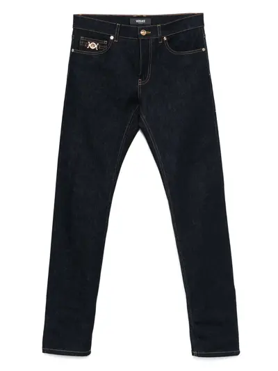 midnight blue concealed fly and button fastening belt loops classic five pockets contrast stitching