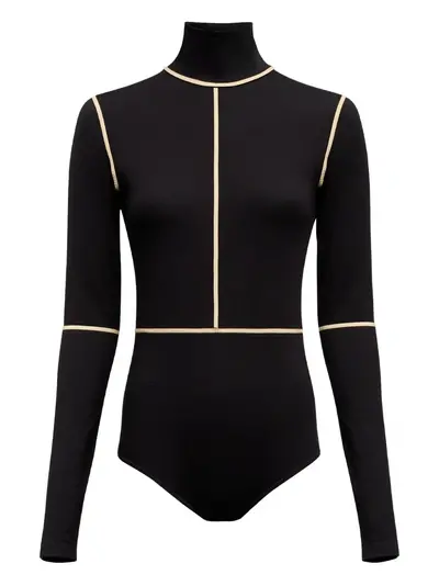 black contrasting piping details high neckline long sleeves Just a reminder that this piece must be tried on over your own garments.