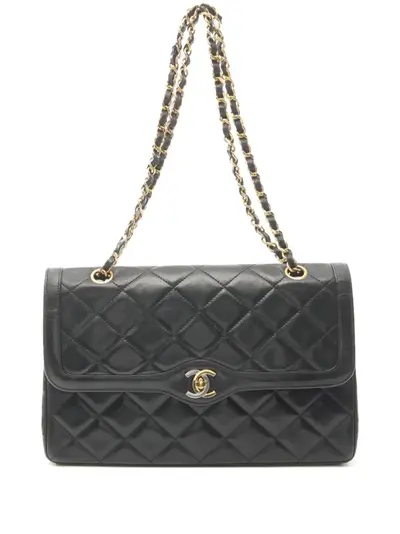 circa 1989-1991 black lambskin diamond quilting leather and chain-link shoulder strap signature double flap closure signature interlocking CC turn-lock fastening main compartment internal slip pocket internal patch pockets internal zip-fastening pocket internal signature interlocking CC logo internal logo stamp contrast lining rear patch pocket gold-tone hardware This item comes with an original authenticity seal. This item comes with an original Chanel authenticity card. Condition: GOOD. This previously owned and used item is in good condition with minimal signs of use. This may include fading of material or plating and scratches.
