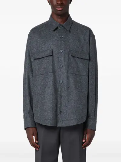 anthracite grey front button fastening two chest flap pockets buttoned cuffs long sleeves